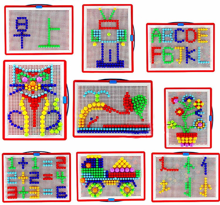 هذه اللعبة ممتعة جدًا للأطفال للعب مع العديد من مسامير الفطر اللطيفة مثل الفراشة والحروف والأرقام والمنزل والحيوانات والأطباق والزهور وما إلى ذلك