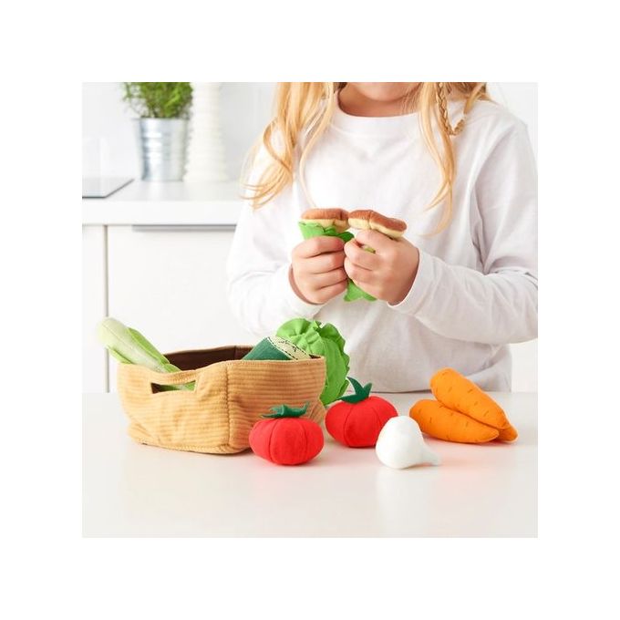Jouer permet d’apprendre les couleurs, les formes et le nom des légumes. Ceux-ci sont fabriqués dans des matériaux doux et sont lavables pour que votre enfant créent des plats dignes d’un grand chef.Des légumes frais tous les jours ? Quelle chance ! Que va vous préparer votre petit chef à l’aide de ces légumes ? Peut-être une salade colorée ou une délicieuse rata touille Favorise les jeux de rôle qui permettent aux enfants de développer leur sociabilité en imitant les adultes et en inventant leurs propres rôles.
